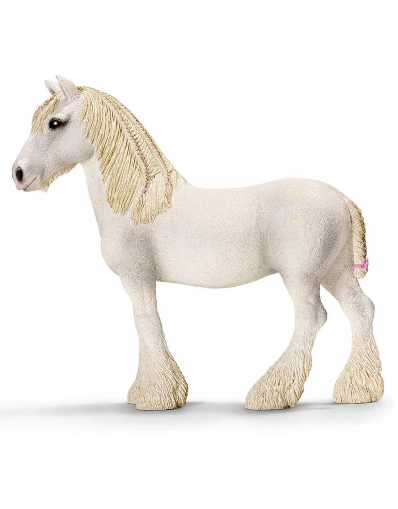 Shire merrie van het merk Schleich. Deze imposante trekpaarden zijn een bijzondere verschijning door hun forse en robuuste bouw dwingen ze al een vorm van gezag uit. Maar er zijn een heleboel lieve Shire paarden die geen vlieg kwaad doen.