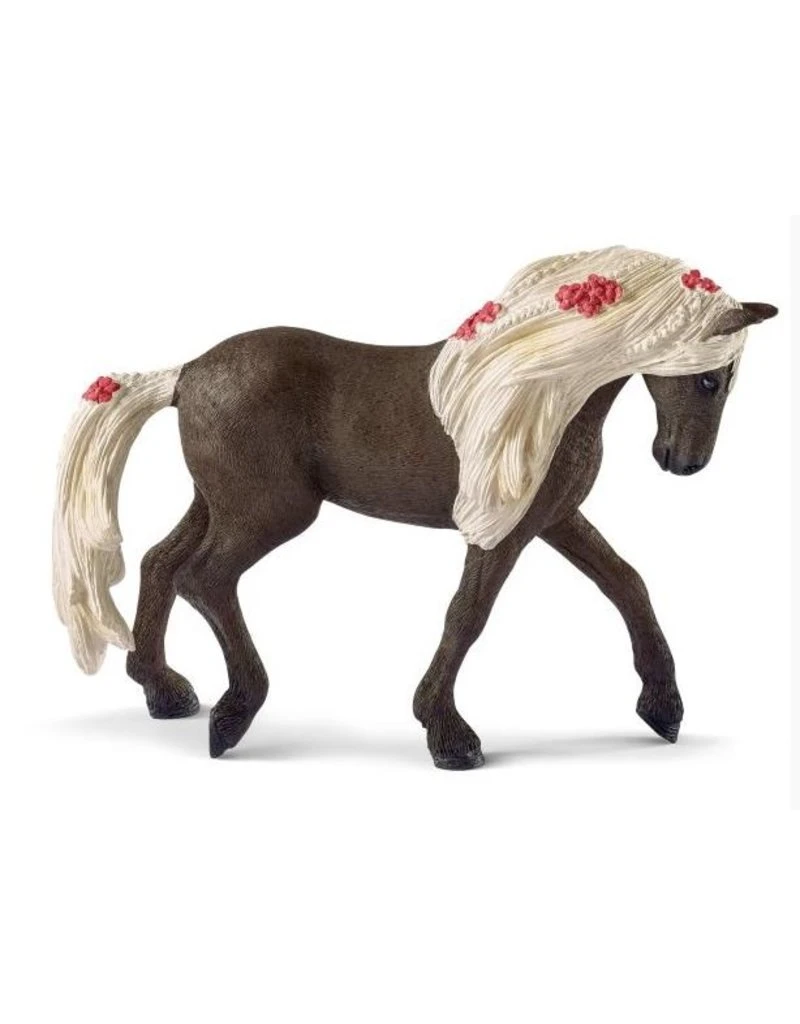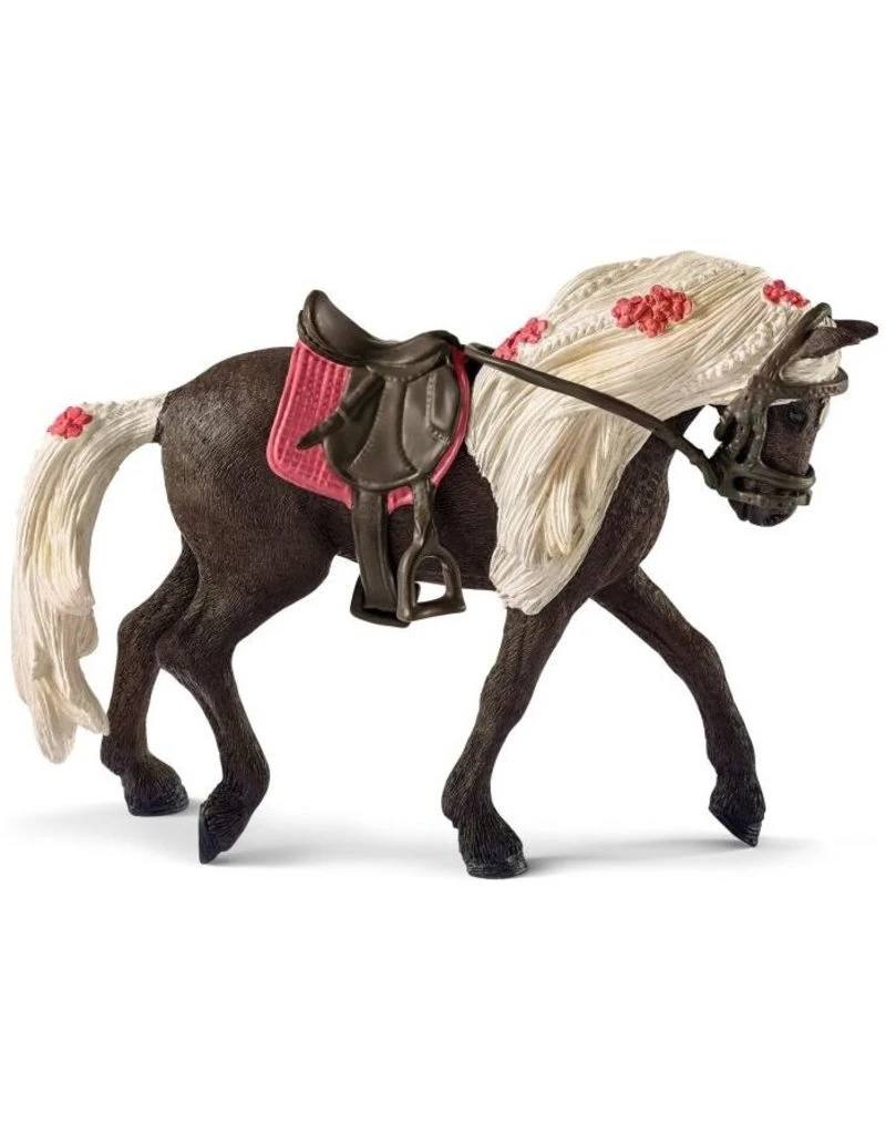 Op de paardenshow in Lakeside trekt de Rocky Mountain Horse-merrie met zijn sierlijke bewegingen de aandacht van iedereen. Het paardenras heeft een natuurlijke aanleg voor de gang Tölt, waar altijd ten minste één been op de grond blijft. Dit geeft de rijder een bijzonder comfortabele stoel in het zadel. De Schleich®-figuren zijn allemaal naar de details gemodelleerd en staan voor pedagogisch waardevolle spellen.