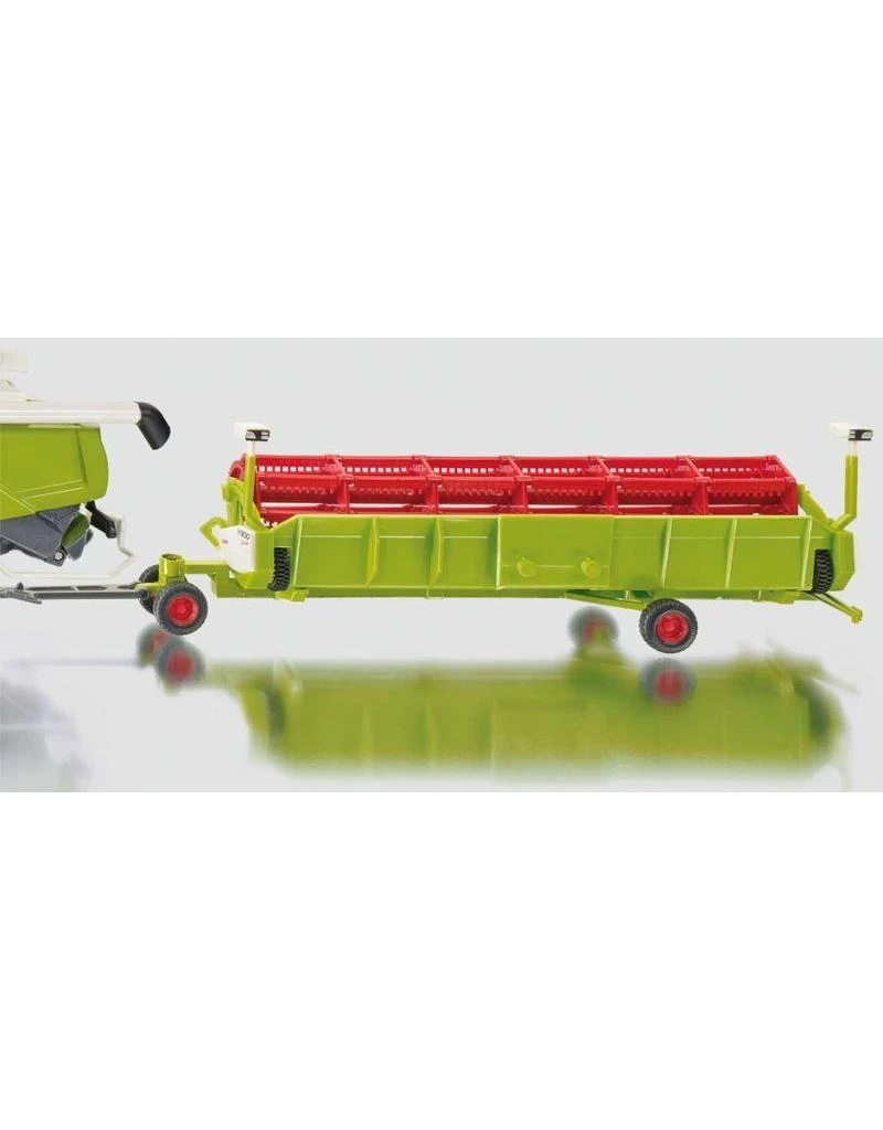 De nieuwste rupsbandentechniek kenmerkt de maaidorser Lexion 770 van wereldmarktleider Claas, die de oogst nu ook als imposant SIKU-model binnen zal halen. Het voor het grootste deel van metaal gemaakte model is voorzien van een grote verscheidenheid aan functies. Zo is het maaibord in hoogte verstelbaar en afneembaar. Voor het transport over de weg kan het met GPS-cameras uitgeruste maaibord op de bijbehorende wagen worden verladen en achter de maaidorser worden gehangen. De schommelend opgehangen rupsloopwerken zorgen ervoor dat de maaidorser soepel over de speelgoedakker glijdt. De lospijp is draaibaar en de kleppen van de reusachtige graantank kunnen worden geopend. Een geveerde vooras zorgt voor rijcomfort, terwijl met de achteras die via een draaiknop wordt bestuurd nauwkeurig kan worden gereden en gerangeerd. Een niveaucompensatie op de achteras is standaard. De kleppen rechts en links aan de zijkant kunnen worden geopend en geven zicht op de gedetailleerd vormgegeven aggregaten. De optische vormgeving getrouw naar het origineel maakt het beeld van dit bijzondere oogstmachinemodel op indrukwekkende wijze compleet.
